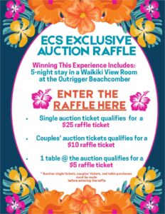 Click on the images below to Enter our Hawaii Trip raffle, or Purchase an Auction Ticket for an ECS Teacher, or to RSVP for Childcare the night of the auction.